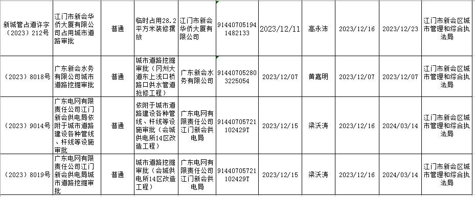 2023.12.15澳洲幸运5(中国)开奖记录查询站 城市管理和综合执法局行政许可信息