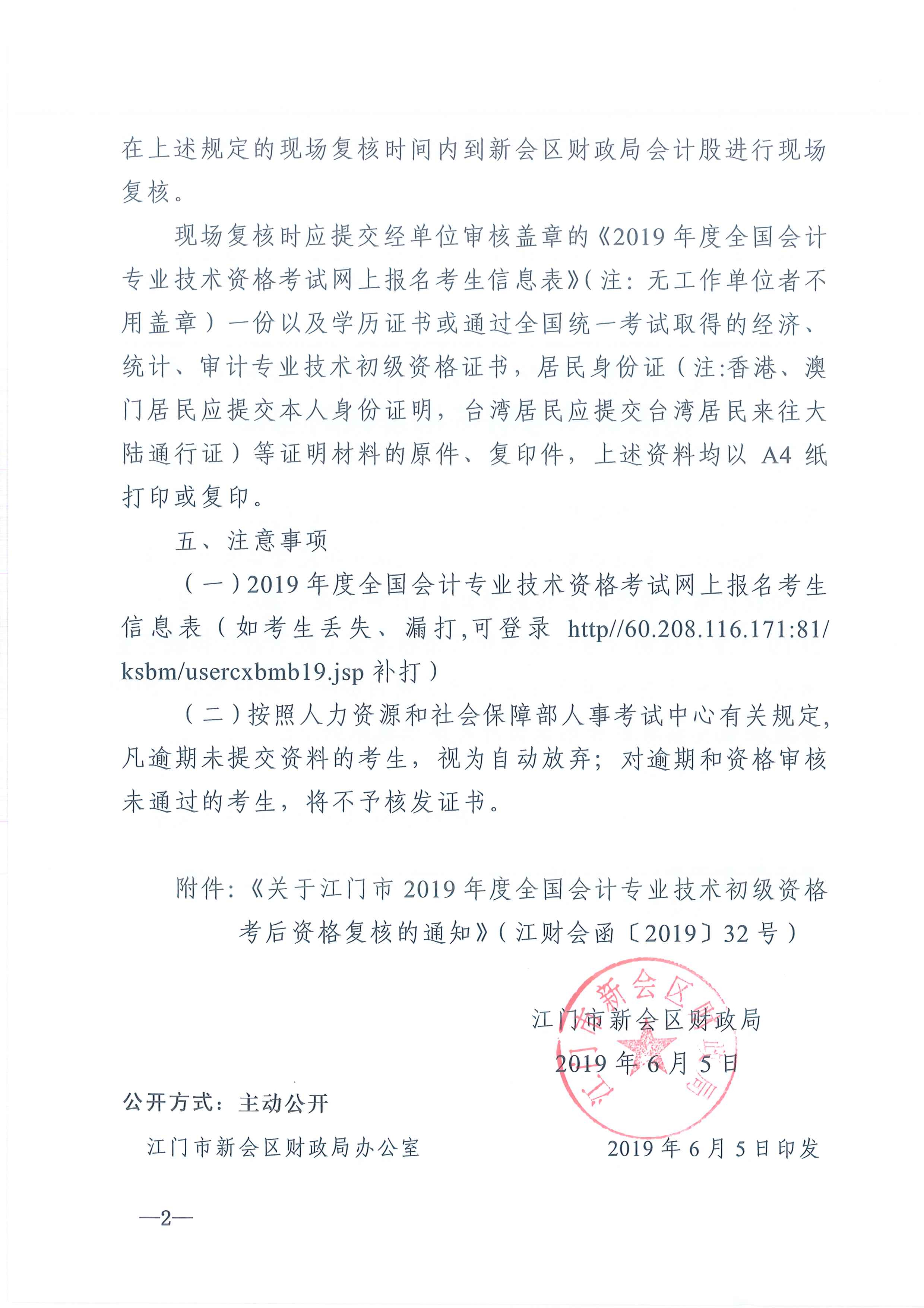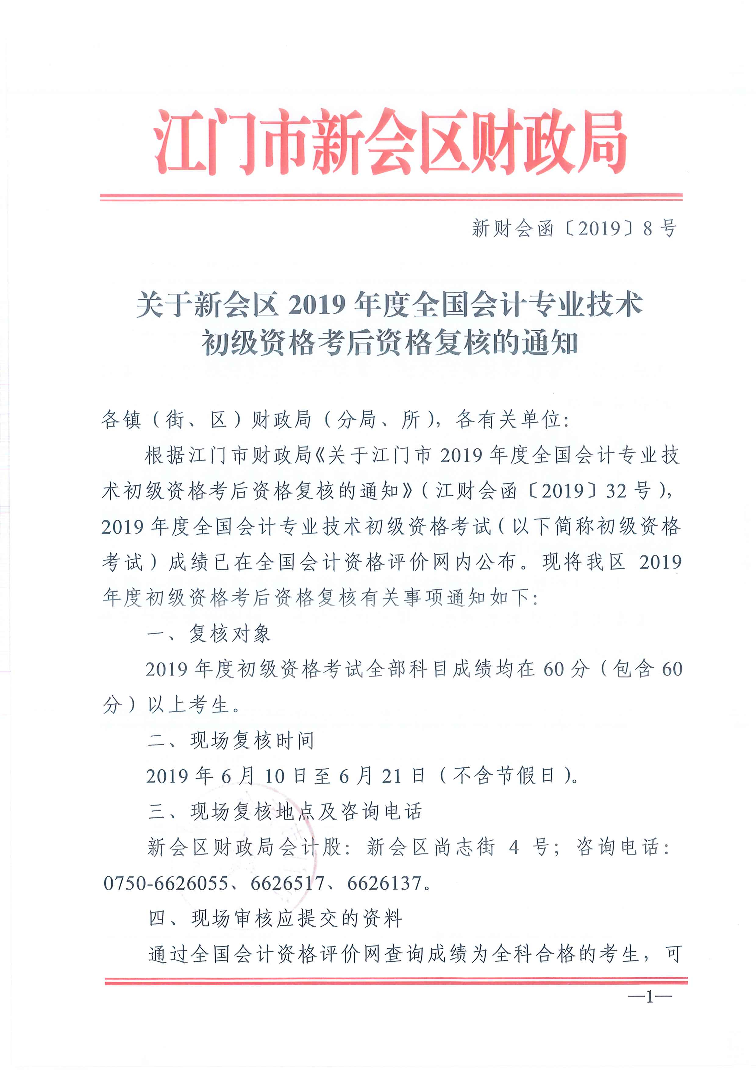 关于澳洲幸运5(中国)开奖记录查询站 2019年度全国会计专业技术初级资格考后资格复核的通知