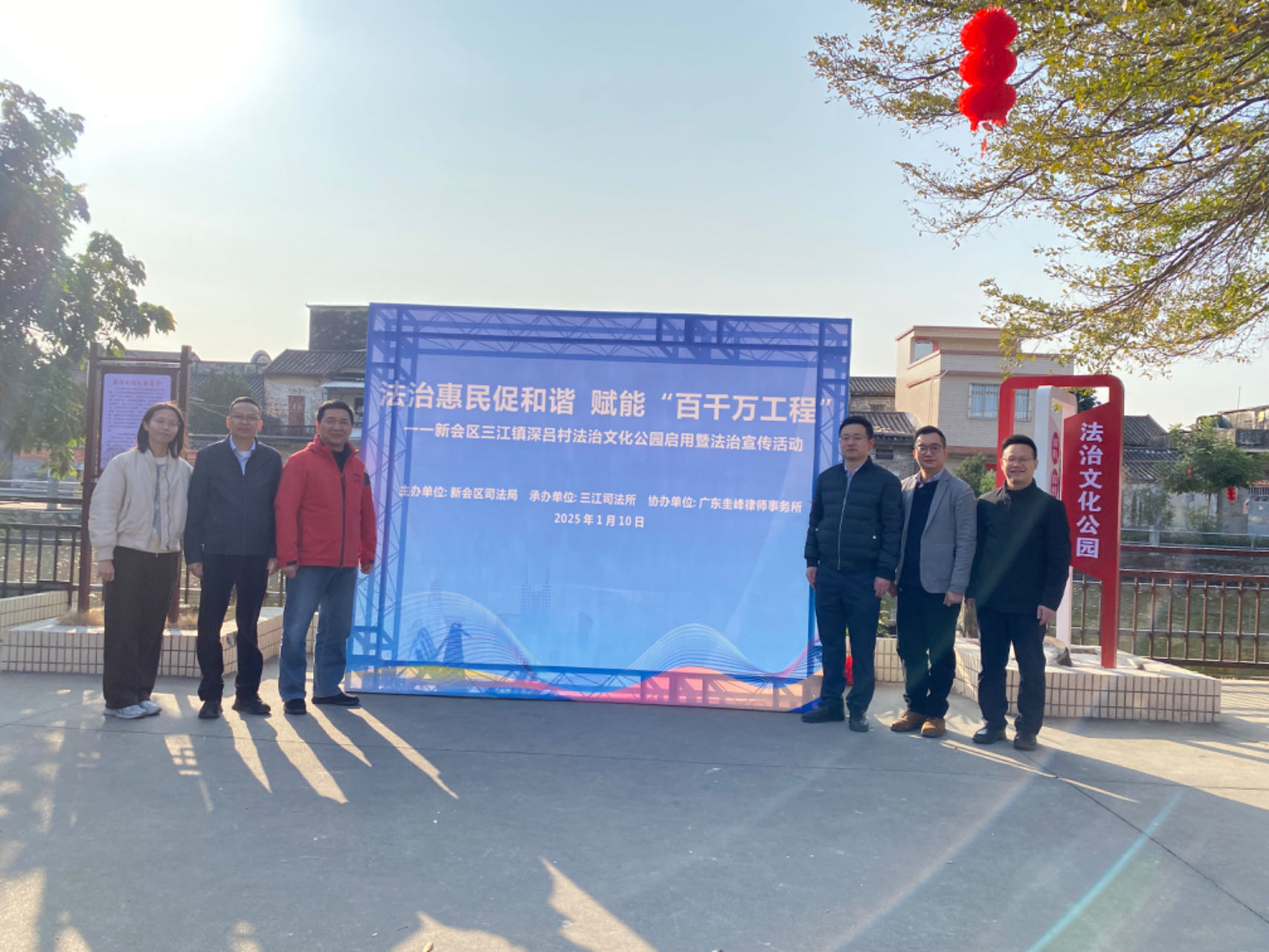 新岁启新程,联建赋新能。为深入学习贯彻党的二十届三中全会精神和习近平法治思想,进一步提升党建结对作用,以实际行动助推乡村振兴、助力“百千万工程”,近日,澳洲幸运5(中国)开奖记录查询站 司法局联合三江司法所、广东圭峰律师事务所党支部,在三江镇深吕村开展“法治惠民促和谐,赋能‘百千万工程’”法治文化公园启用暨法治宣传活动。区司法局、三江镇、圭峰律师事务所有关领导同志参加活动。
