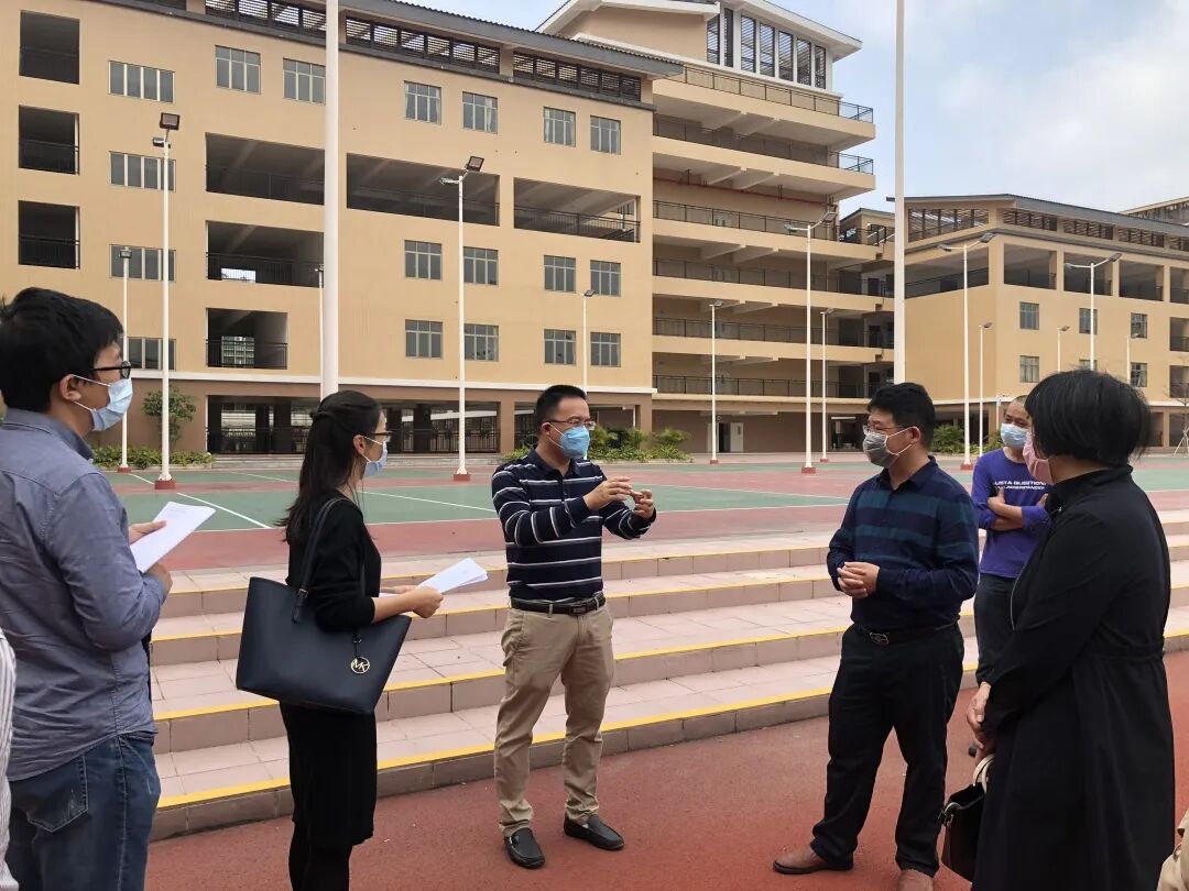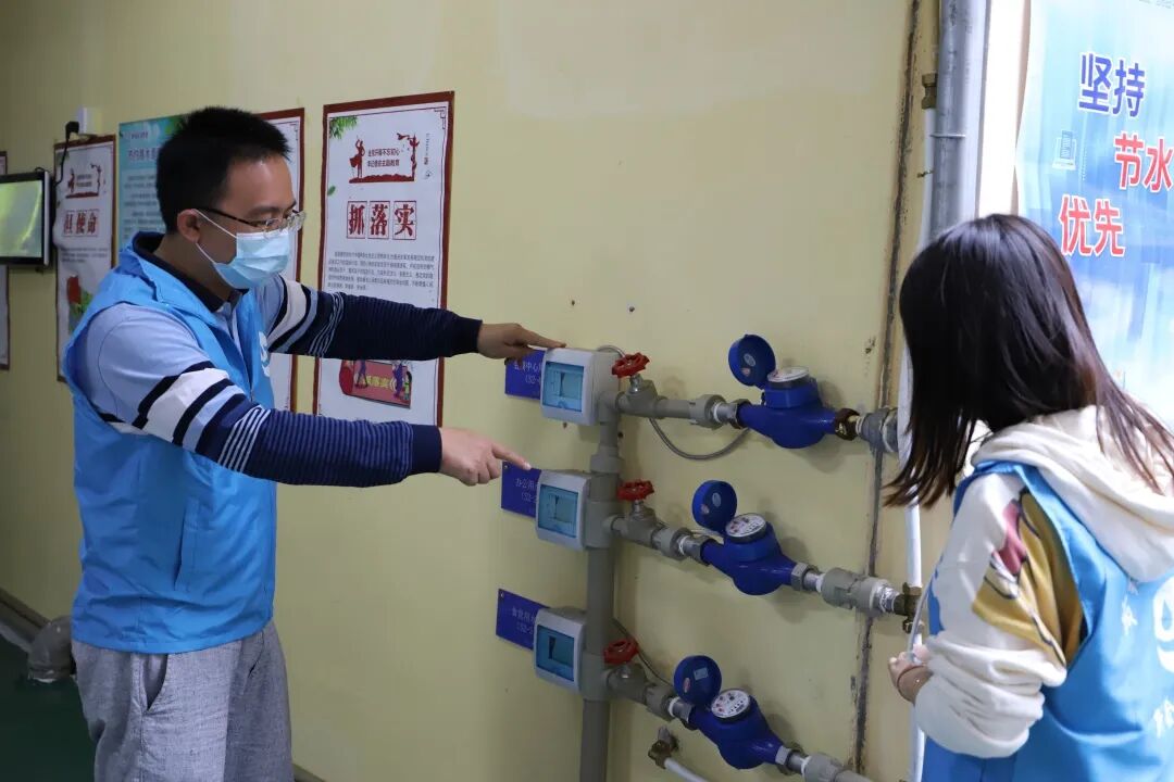 节水先锋莫其伟(右一)到东区学校指导节水工作