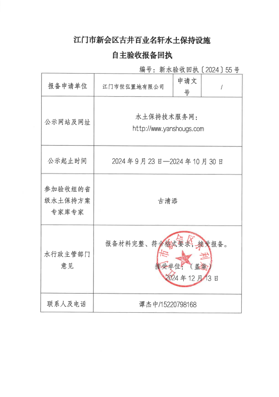 澳洲幸运5(中国)开奖记录查询站 古井百业名轩水土保持设施自主验收报备回执