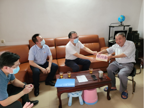 2022年7月1日,国家统计局江门调查队朱小斌副队长一行3人,在区统计局党组成员、总统计师张伟健同志的陪同下分别到会城街道和三江镇开展“七一”慰问老党员记账户活动。