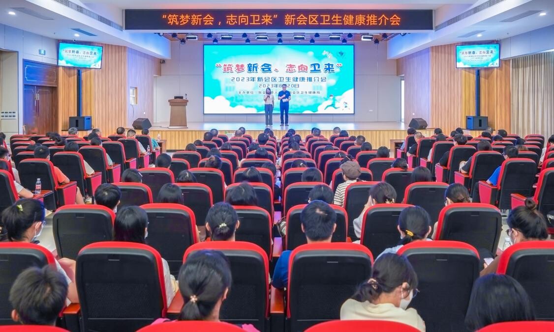 卫生健康推介会,现场吸引了超过120名在读医学生参加。区人力资源和社会保障局党组成员、副局长何赟同志,区卫生健康局党组成员、副局长钟艳珍同志,区委组织部人才工作股股长余茂东同志出席了会议。