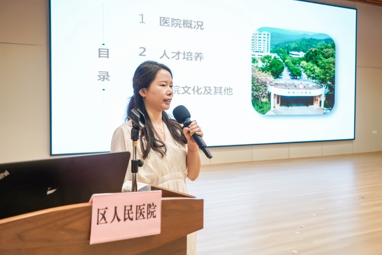 区人民医院、区中医院、区妇幼保健院派出代表现场介绍单位的详细情况,特别展现了医院的技术能力、发展前景、人才培养制度等,帮助医学生充分认识医院。