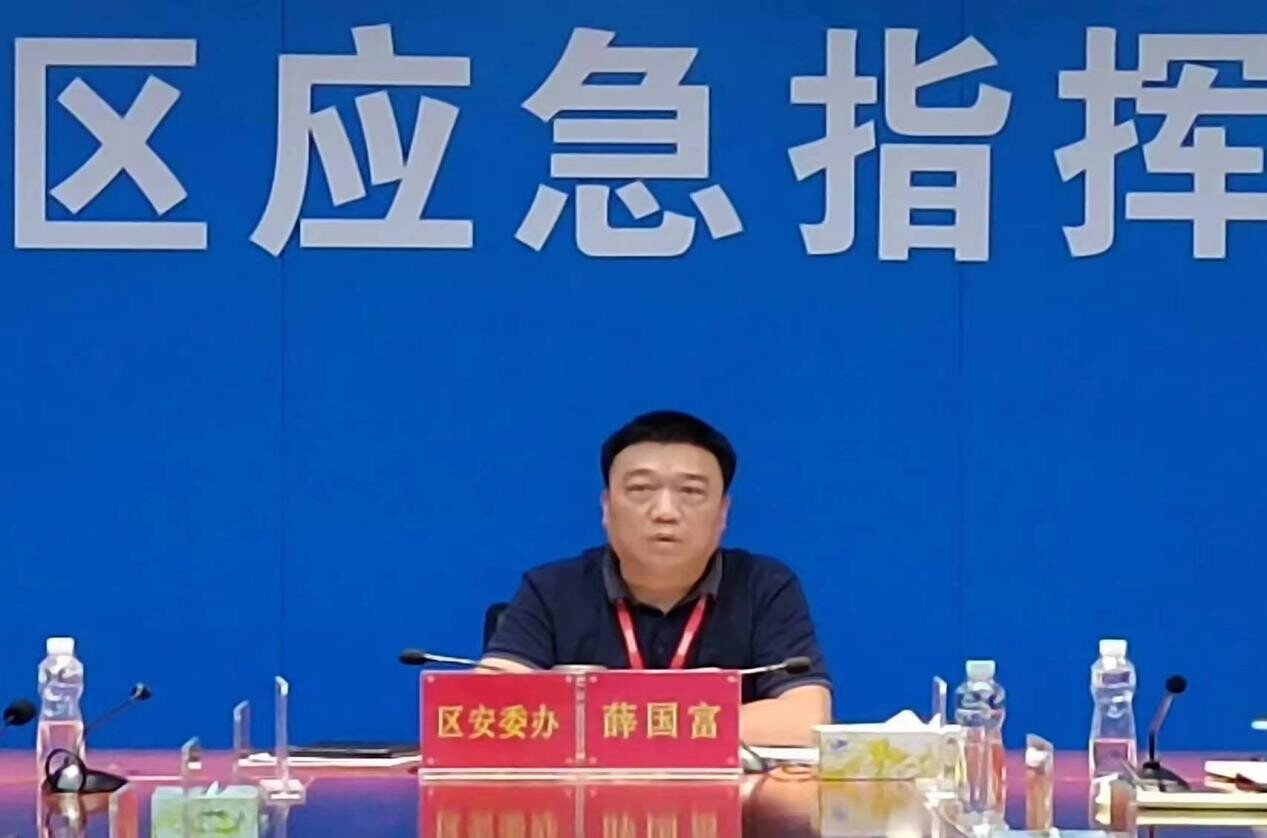 (图1区安委办主任、区应急管理局局长薛国富出席会议)