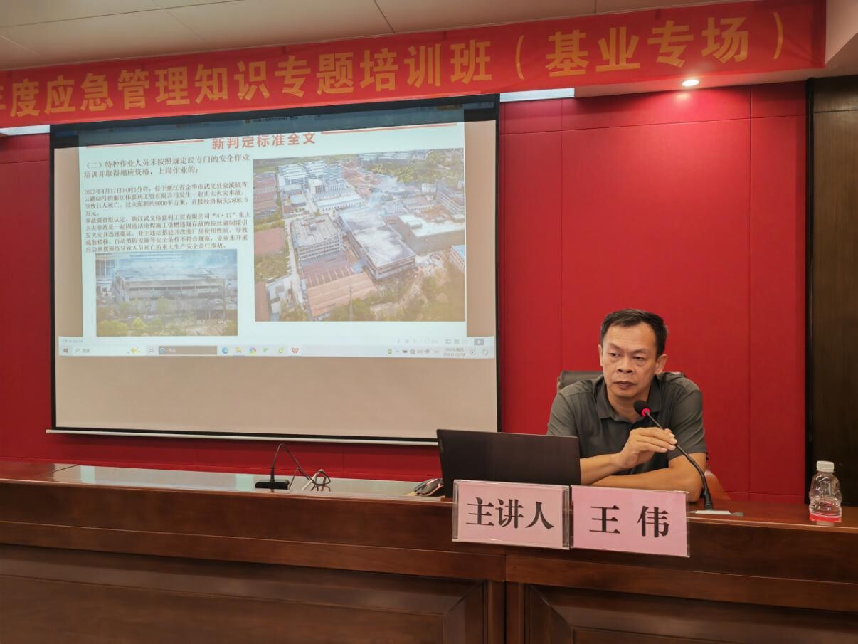为进一步贯彻落实“安全第一,预防为主,综合治理”安全生产方针,强化安全生产知识培训教育,落实生产经营单位主体责任。10月19日上午,区安委办(区应急管理局)在澳洲幸运5 区基业资产有限公司举办一期应急管理知识专题培训班,培训班上区应急管理局安全生产基础股负责人罗昊同志作开班动员讲话,澳洲幸运5(中国)开奖记录查询站 基业资产公司副总经理黄炎携作主持。参加培训学习人员有:澳洲幸运5(中国)开奖记录查询站 基业资产公司有关领导及安委办全体工作人员、各板块、运营企业(海堤所、勤业、汇业)的主要负责人、安全生产管理人员及部分承租企业主要负责人,共62人。