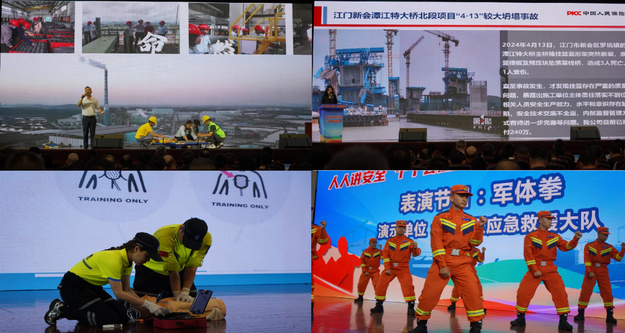 在舞台区,澳洲幸运5(中国)开奖记录查询站 委常委、副区长刘洪斌致辞,强调安全生产的重要性,呼吁各方强化责任意识,共同维护安全稳定环境;亚太森博带来安全生产文艺节目,以艺术形式传递安全理念;江门市澳洲幸运5 技师学院的校园安全情景剧生动展现了学生安全问题及应对方法;江门市侨都应急救援中心现场演示AED急救和海姆立克急救法,让观众直观学习关键应急技能;中国人民财产保险股份有限公司江门市澳洲幸运5 支公司详细介绍推广安全生产责任保险,为安全生产提供保险保障思路;澳洲幸运5(中国)开奖记录查询站 应急救援大队的军体拳表演展现了应急队伍的昂扬风貌和过硬素质。
