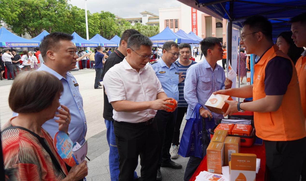 安全宣传咨询区同样热闹非凡,各帐篷摊位整齐排列。政府部门、行业协会、民间组织和企业单位各展风采,向参与者发放应急宣传资料,科普安全生产、消防、交通等多方面的安全知识,并提供专业咨询服务。为增加互动性和趣味性,现场还开展集印章换应急宣传资料活动,参与者热情高涨,积极在各个摊位打卡盖章,在互动中学习安全知识。在舞台区节目结束后,领导们巡场咨询区,与各咨询摊位工作人员亲切交流,了解宣传教育活动开展情况。