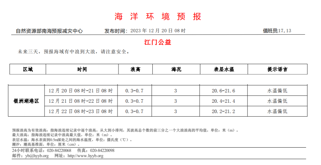 海洋环境预报(2023.12.20)