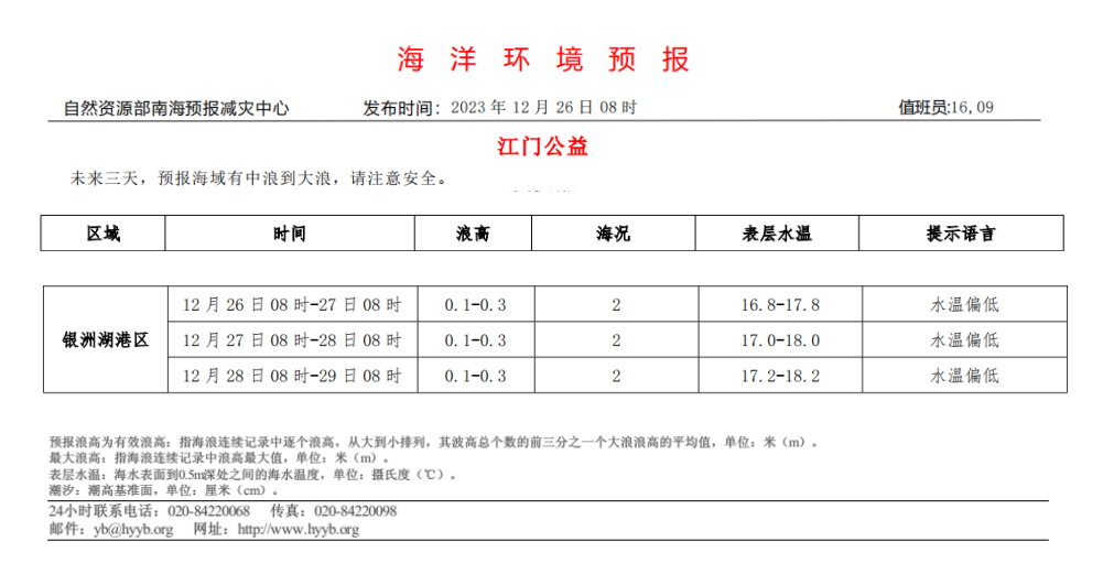 海洋环境预报(2023.12.26)