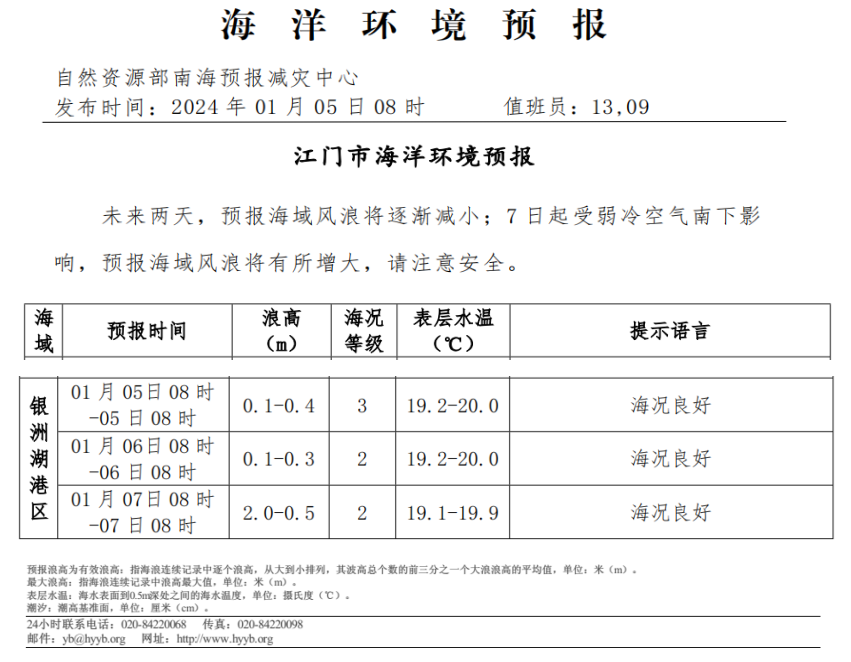 海洋环境预报(2024.1.5)