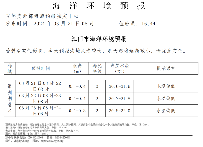 海洋环境预报(2024.3.21)