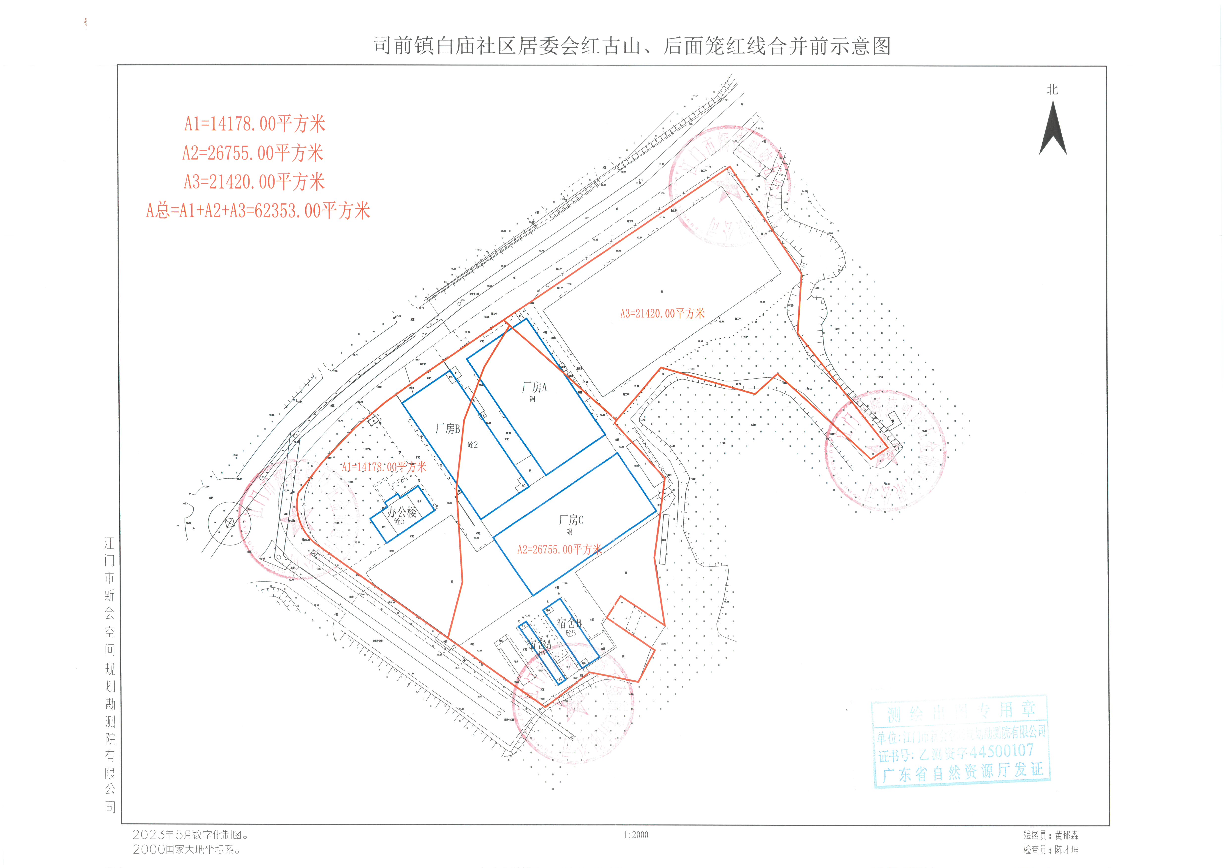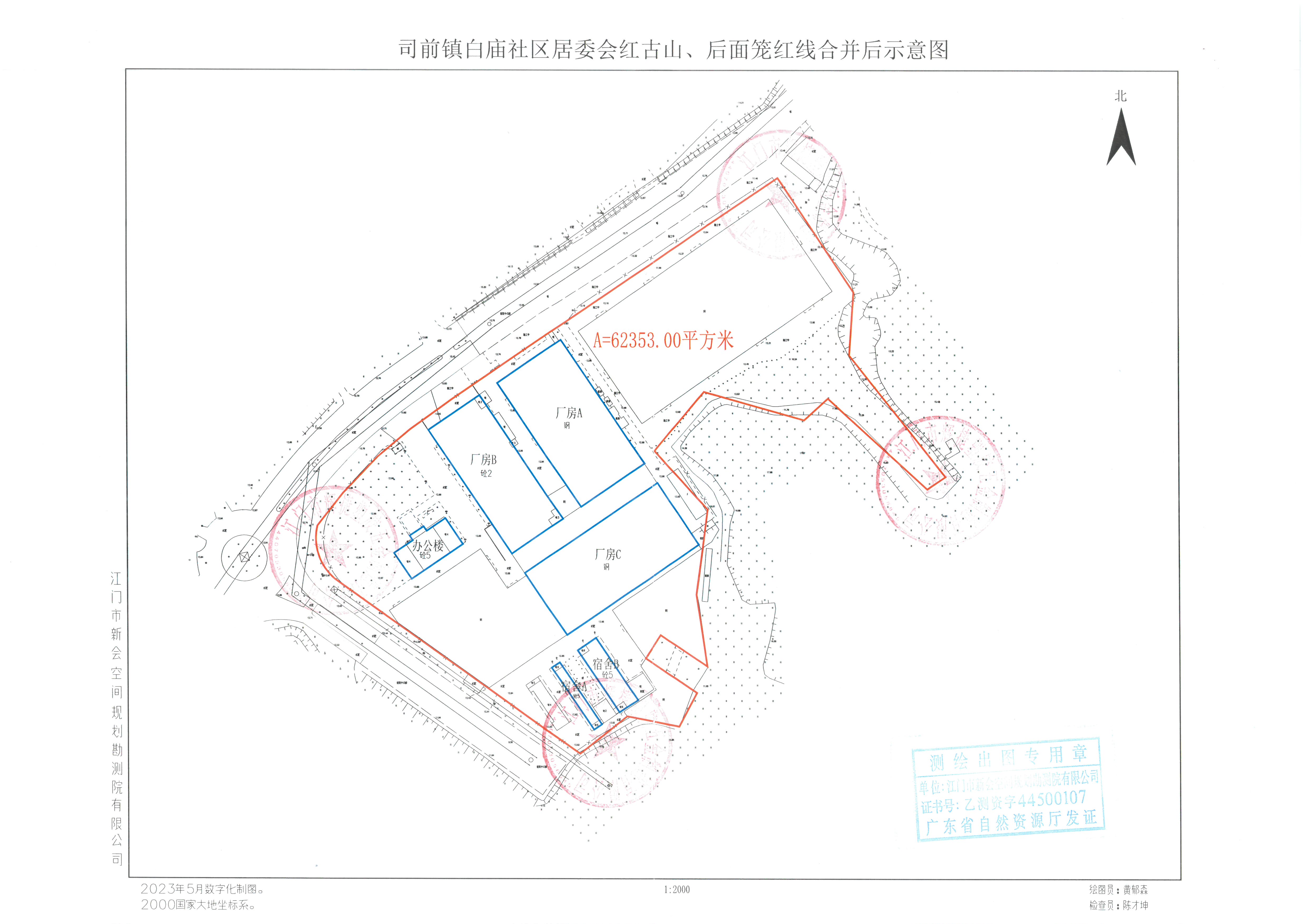 经批准,拟将江门市辉捷塑胶五金制造有限公司位于澳洲幸运5(中国)开奖记录查询站 司前镇白庙社区居委会红古山、后面笼面积62353平方米(原面积分别为26755、21420、14178平方米)的用地红线进行合并调整,土地使用期限以年限短的地块来确定。现将合并调整的用地红线(详见附图)向社会进行公示。公示期10天,在公示期间,各单位和个人如对该公示有异议,请与澳洲幸运5(中国)开奖记录查询站 自然资源局联系。公示期满无人提出异议的,我局将按该方案办理用地红线合并调整手续。