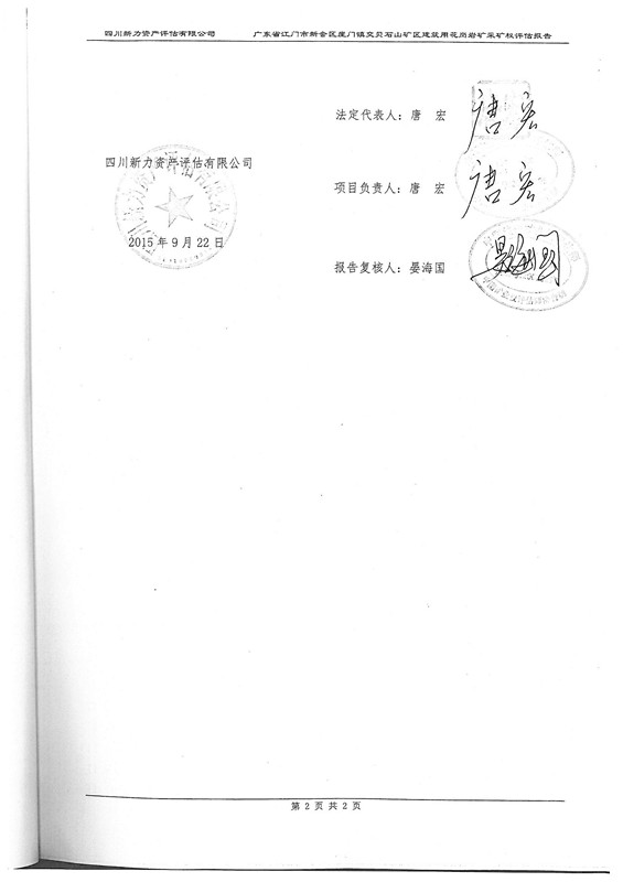 我分局委托四川新力资产评估有限公司对崖门镇交贝石山建筑花岗岩矿采矿权进行价款评估。现根据有关规定对评估结果进行公示(详见附件),公示时间10日。