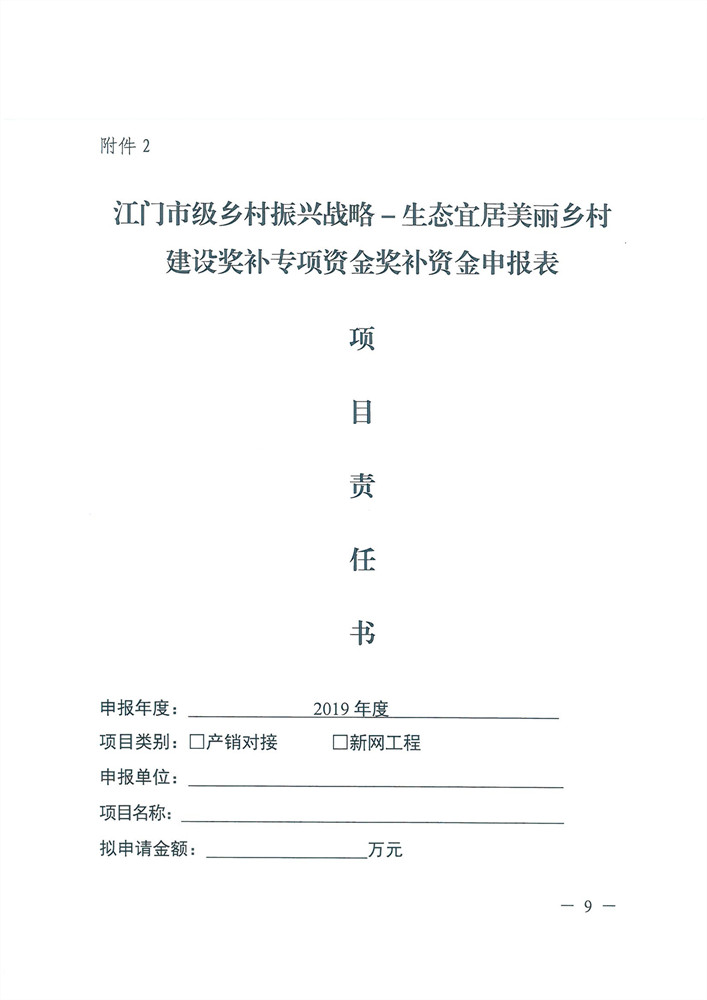 附件2江门市级乡村振兴战略-生态宜居美丽乡村建设奖补专项资金奖补资金申报表
