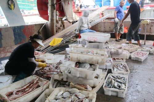 分拣渔获物、装箱、称重登记、加冰装车……归来的渔船一旦靠岸,渔民、渔商便马上与时间赛跑,争取把捕捞的新鲜渔获以最快速度分类打包好,并运送至小货车上,大家各司其职,纷纷沉浸在丰收的喜悦中。
