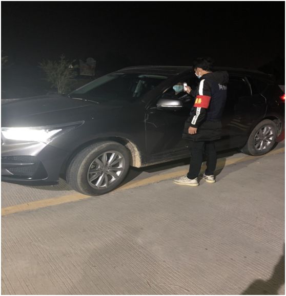 下午3点到晚上9点,是他值班的时段。赵嘉亮从梁叔家里出来,到村口驻点值班了。他赶到三坑旧公路口,这是进村主要路口之一,慈溪村委会在这里设了一个驻点,对进村的外来人口、车辆的信息、来访事由进行详细登记,并进行体温测量。虽然是冬日,但是太阳还是很大,他的脖子晒黑了一圈。晚上6点多,趁着没有车来,赵嘉亮和同事叫了一个外卖,就在驻点匆匆吃完,又开始了外来人员登记工作。