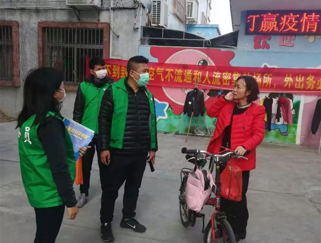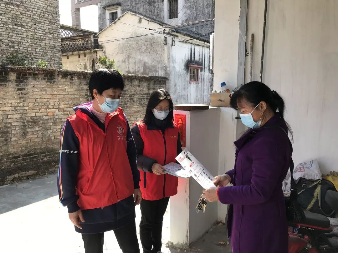 “点对点”入户宣传爱国卫生健康信息350家,派发宣传单张、宣传“不聚会、勤洗手、戴口罩”等防控标语,教育群众简单识别新型冠状病毒一般临床表现;入户排查登记68家出租屋的租户信息,深入排查外来人员“从哪里来、什么时候来、去过什么地方”,落实居家隔离措施;做好居家隔离的湖北籍人员的后勤保障,做到“三按时”,每天按时检测体温两次,每天按时配送生活物资,每天按时内外围消毒,确保“隔离病毒不隔爱心”。