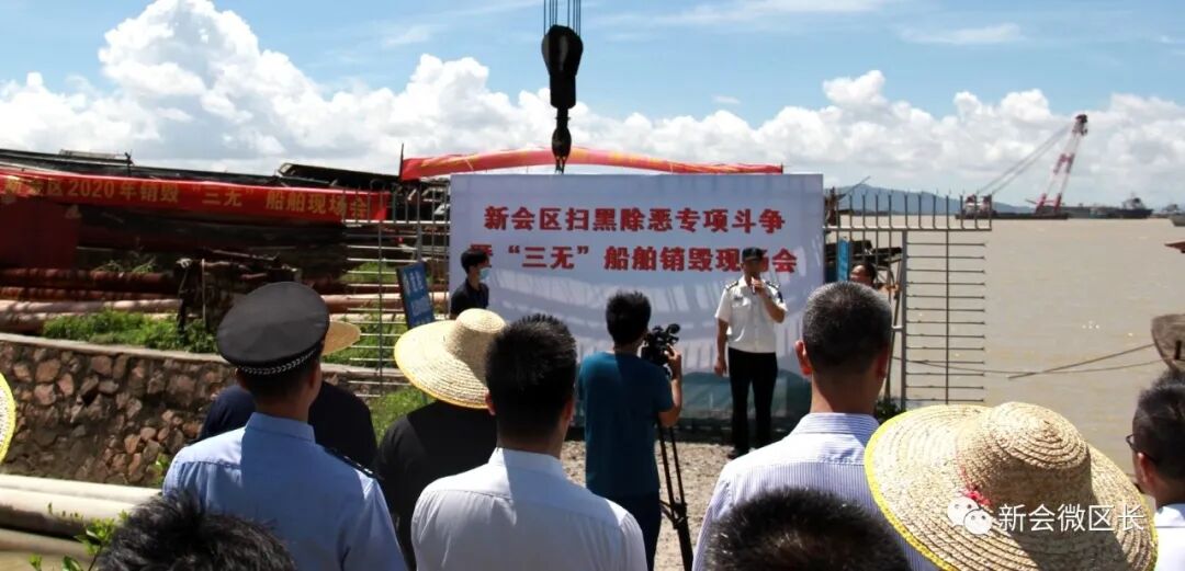 为推进我区扫黑除恶专项斗争深入开展,加强乡村治理工作,6月19日,我区在崖门镇召开扫黑除恶专项斗争暨“三无”船舶销毁现场新闻发布会。