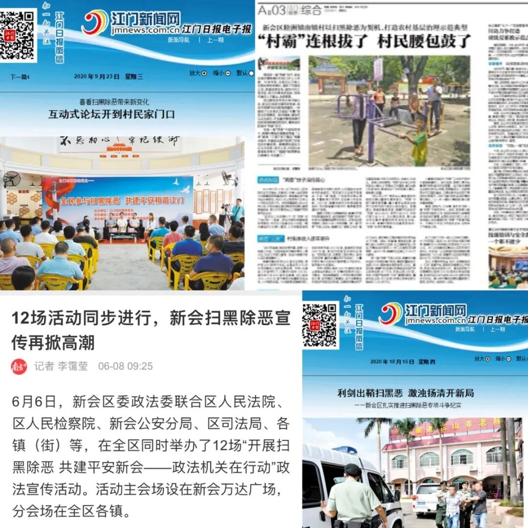 南方日报、江门日报、澳洲幸运5 侨报纷纷报道我区扫黑除恶工作。