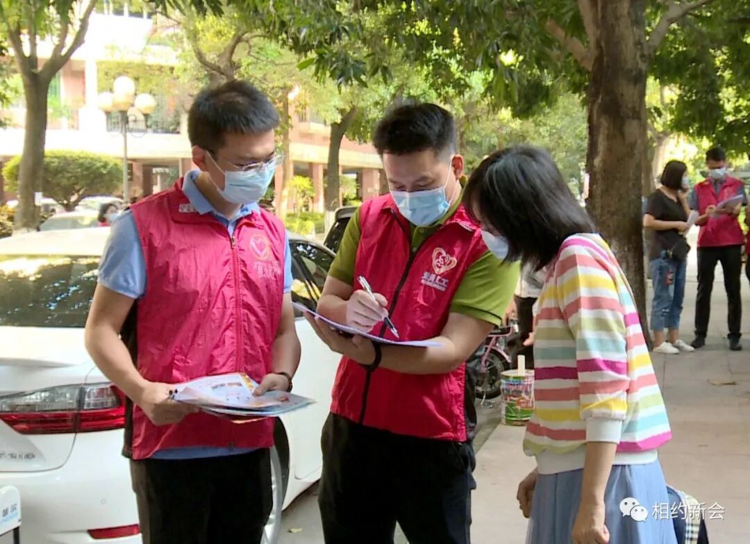 我区党员干部向市民群众发放宣传资料和开展问卷调查。