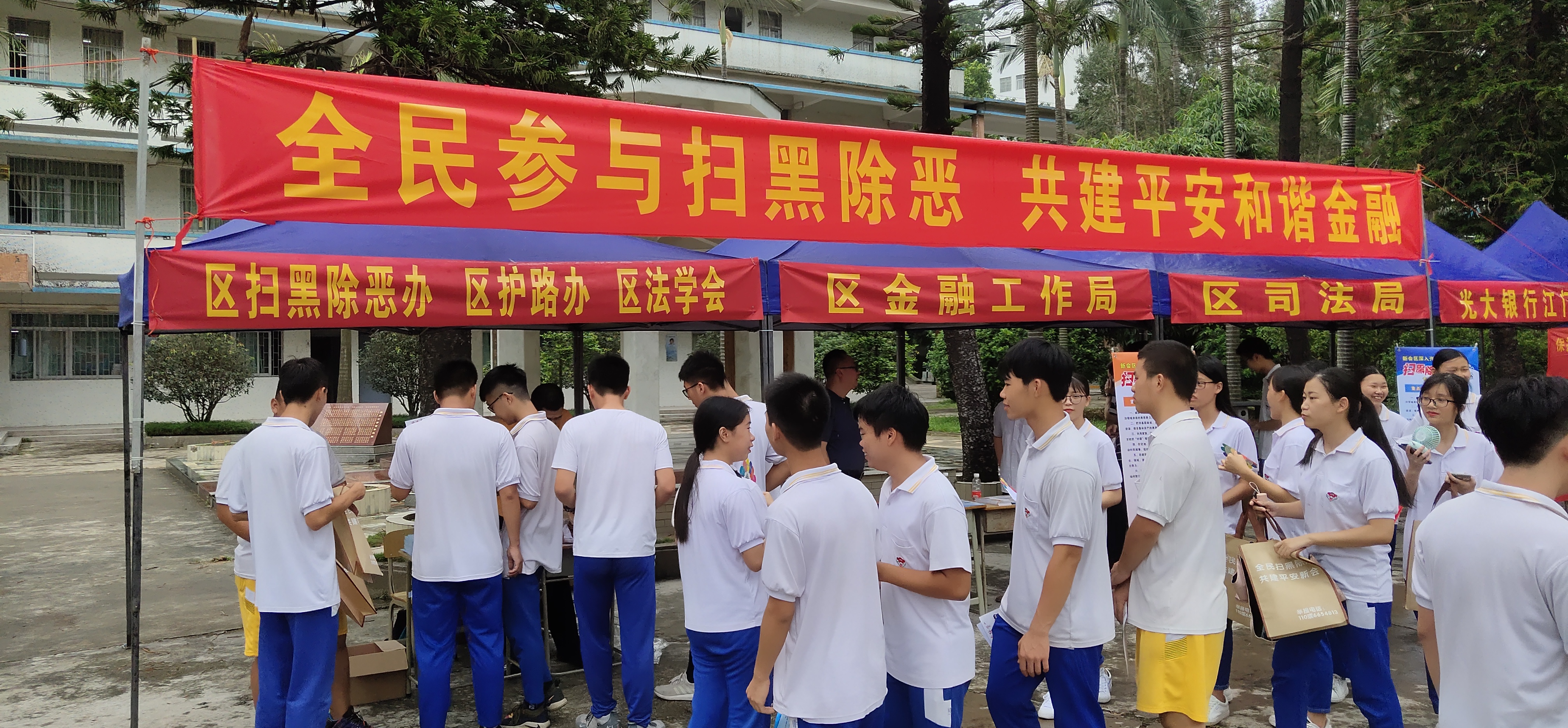 6月17日下午,区扫黑除恶办联合区金融工作局在澳洲幸运5 时年技校冈州校区举办主题为“全民参与扫黑除恶 共建平安和谐金融”的现场宣传活动。活动邀请澳洲幸运5 公安分局、司法局、区护路办等部门以及江门农商行、建设银行、兴业银行等10家金融机构参与。主要开展防范“校园贷”、“套路贷”、打击非法集资、平安铁路建设等方面宣传,营造了良好的扫黑除恶和平安建设宣传氛围。