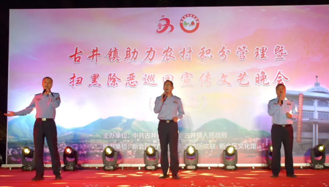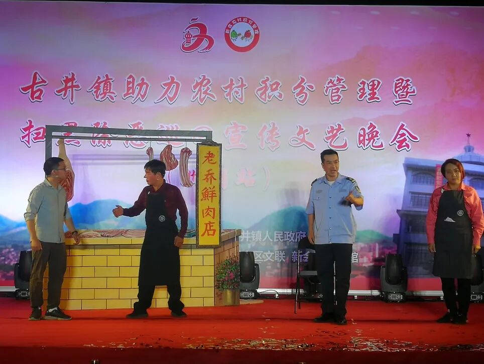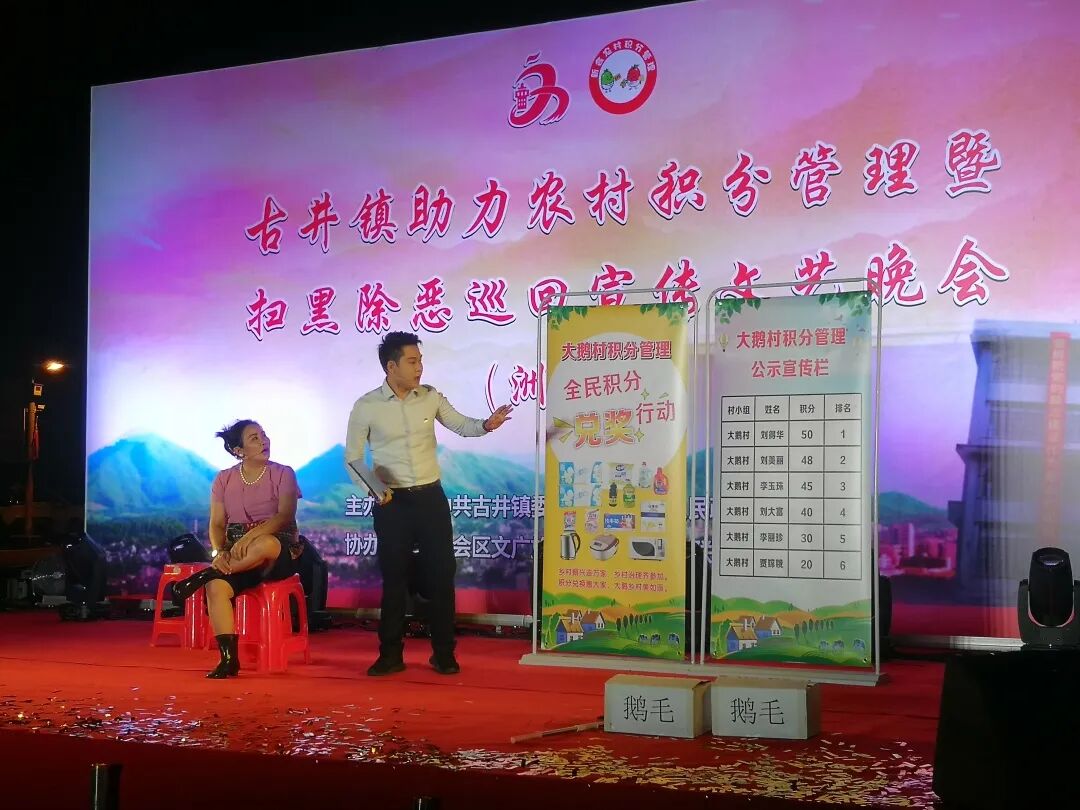 11月9日晚,古井镇农村积分管理暨扫黑除恶巡回宣传文艺晚会第一场在洲朗村新时代文明实践广场举行。